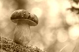 Penny Bun, Boletus edulis, mushroom in forest. Autumn Cep Mushrooms.Gourmet food