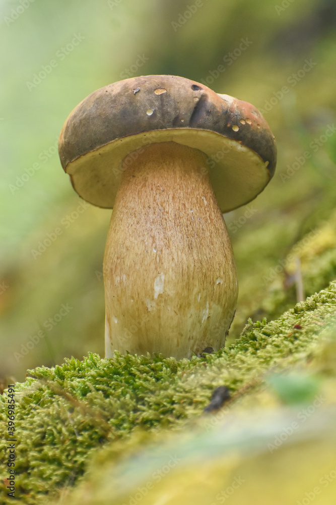 Penny Bun, Boletus edulis, mushroom in forest. Autumn Cep Mushrooms.Gourmet food