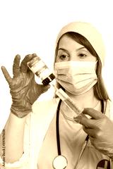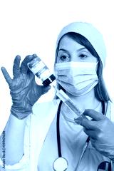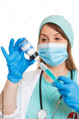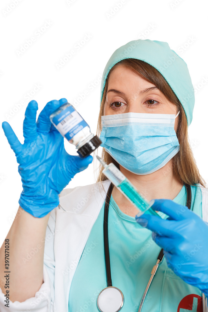 Coronavirus Vaccine bottle Corona Virus syringe doctor COVID-19 Covid vaccines portrait format isolated on white