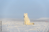 Arctic fox (Vulpes Lagopus) in wilde tundra. Arctic fox sitting.
