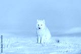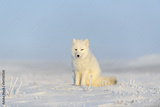 Arctic fox (Vulpes Lagopus) in wilde tundra. Arctic fox sitting.