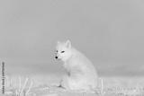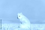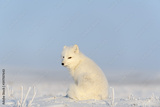 Arctic fox (Vulpes Lagopus) in wilde tundra. Arctic fox sitting.