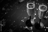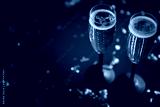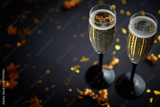 Two glasses full of sparkling champagne wine with golden decoration