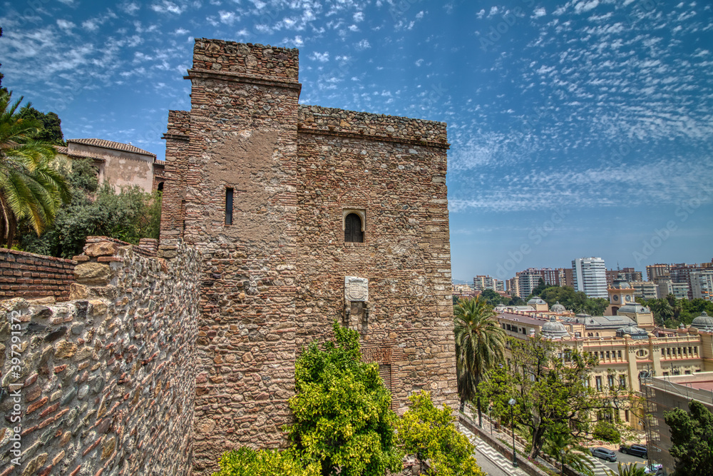 From the Alcazaba of Malaga, a fortified citadel from the Islamic period of the 11th century, you can enjoy wonderful views of the city of Malaga, Costa del Sol, Andalusia, Spain