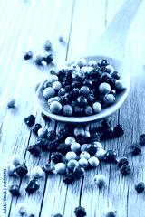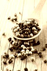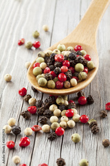 Colored Peppers Mix and wooden spoon
