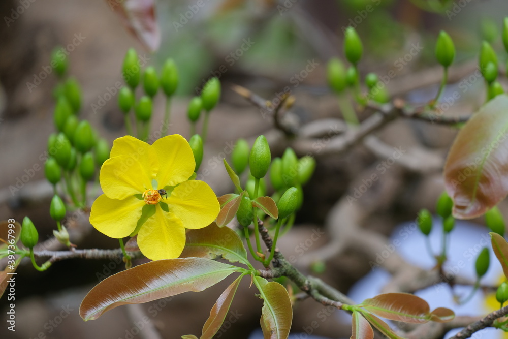 The best stock of apricot blossom (Ochna Integerrima). Royalty high quality free footage of Ochnaceae. Ochna integerrima is symbol of Vietnamese traditional lunar New Year. Mai flower in Vietnamese