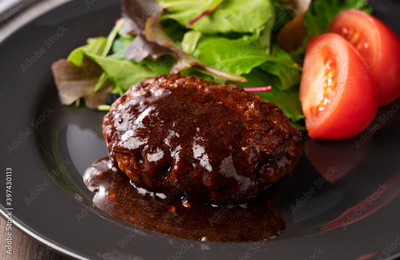 Hamburger served on a plate