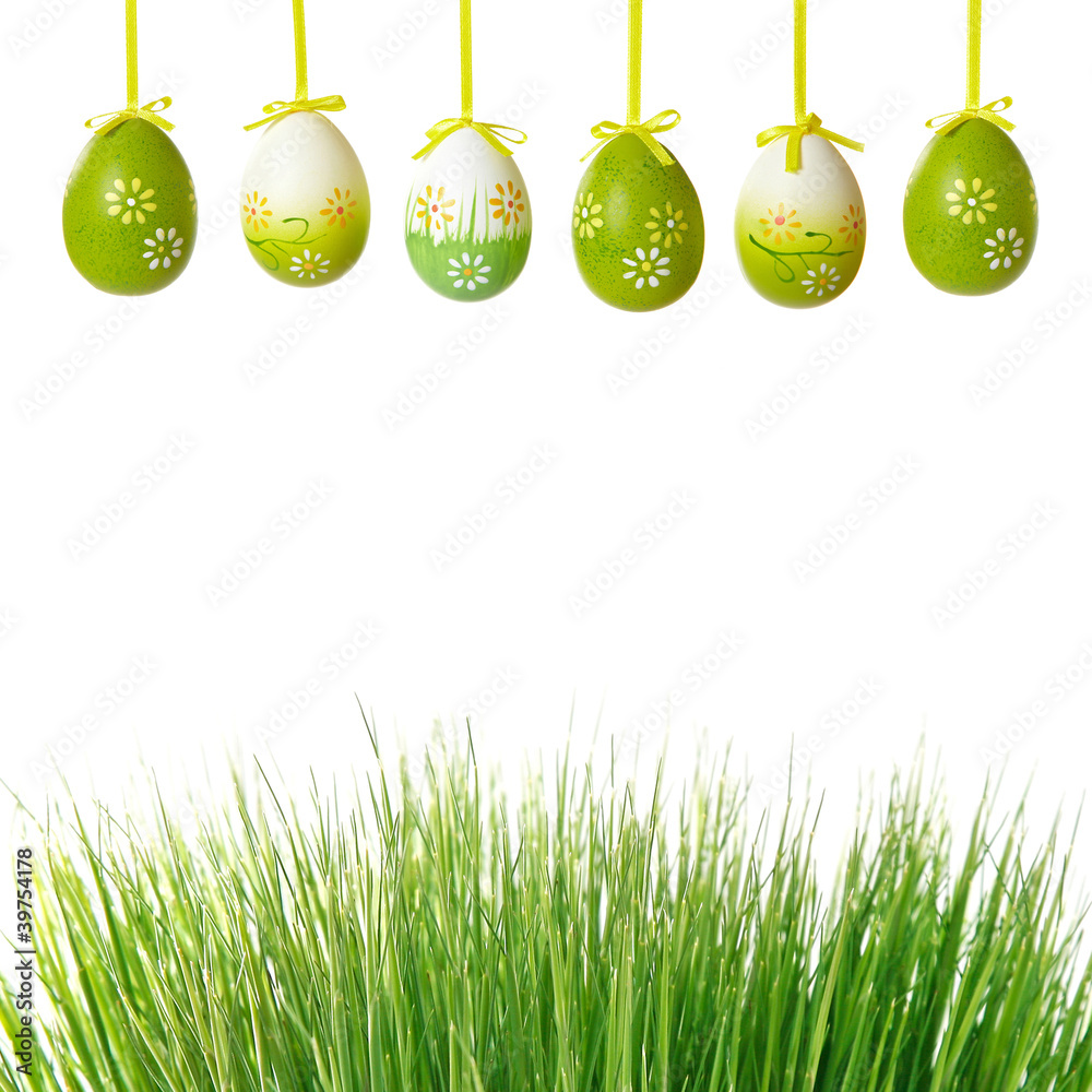 green grass and easter eggs