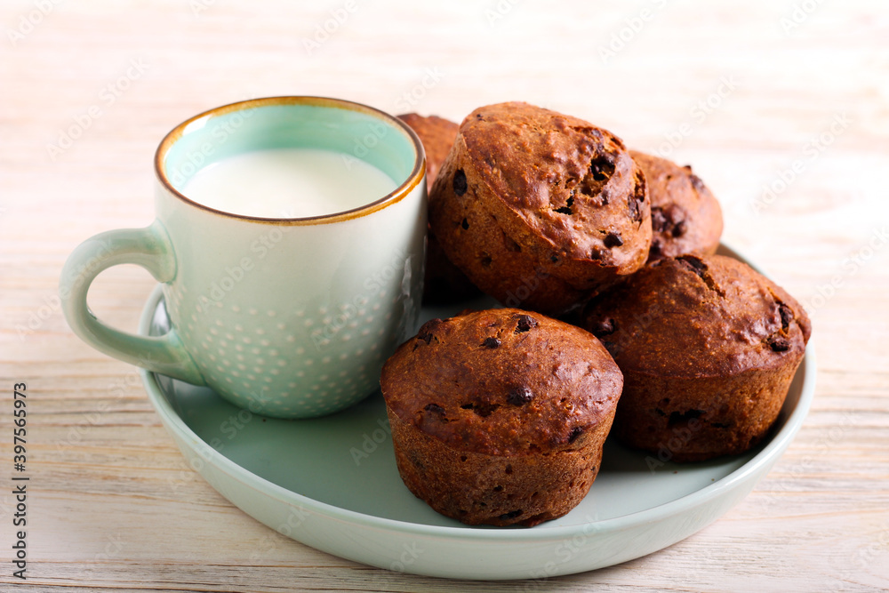 Chocolate cakes with milk