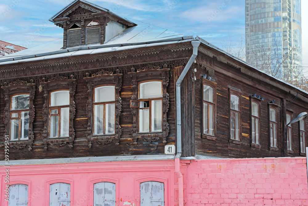 An old merchant's house from the end of the 19th century with carved wooden decorations
