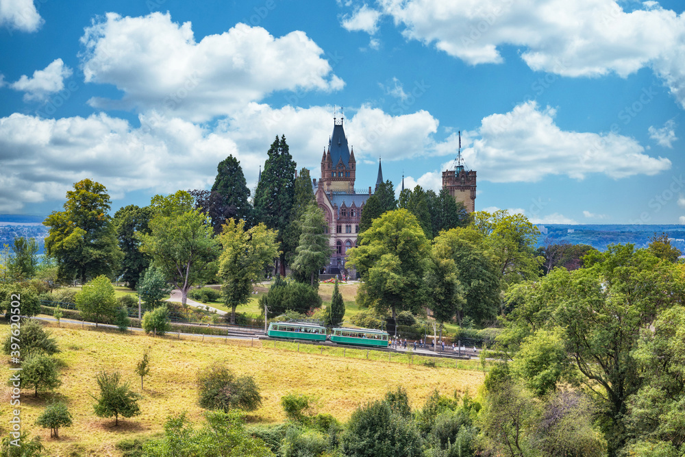 The cable railway to the Drachenfels in front of the Drachenburg Castle in Koenigswinter near Bonn.
