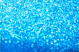 Blue glitter foil Christmas background. Shiny metal blue foil texture abstract defocused background. Sparkle glitter texture with bokeh lights