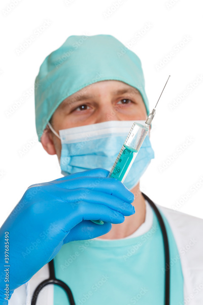 Coronavirus Vaccine Corona Virus syringe doctor COVID-19 Covid portrait format isolated on white