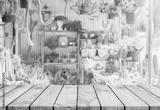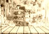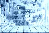 Empty wood table top and blurred green house with cactus and succulent in agricultural farms background - can used for display or montage your products.