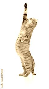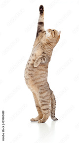 Pregnant cat looking upward isolated on white