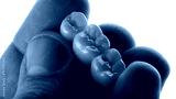 ceramic dental bridge with aesthetics, filmed in hand on white background