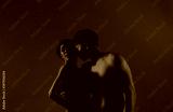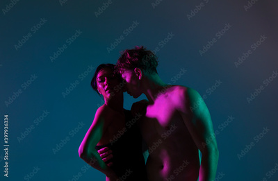 Close up portrait of young couple. Couple in love. Light. Background. Man and woman studio. Male. Sensual.