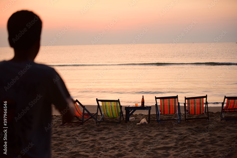 Sunrise at the beautiful beach view Among the many people come to play in the sea before the dusk.silhouette of sunset at beach.