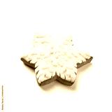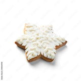 Merry Christmas gingerbread snowflake cookie isolated on white background. Winter baking at Xmas or New Year holiday