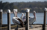 The Australian pelican is a large waterbird and is widespread on the inland and coastal waters of Australia. It is a predominantly white bird with black wings and a pink bill.