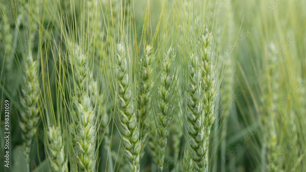 Triticale fields wheat hybrid Triticum rye Secale first bred mature bio organic ear class, pawheat, grown extensively grain green unripe harvest, shot detail, grown mostly for forage fodder