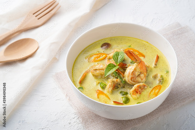 Green Curry with shrimp.Thai style spicy food.