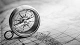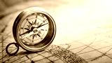 Magnetic old compass on world map. Travel, geography, navigation, tourism and exploration concept background. Treasure Island on the Pirate Map.