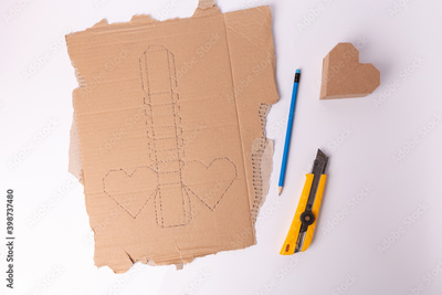how to make heart shape craft paper present, top view, DIY, carton mockup, cutter