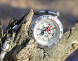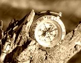 Classic navigation compass on natural background as symbol of tourism with compass, travel with compass and outdoor activities with compass