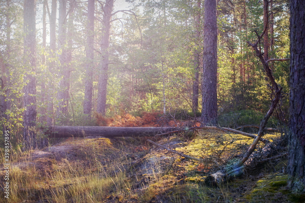 August forest etude-landscape with the Northern nature of Russia in a pine forest