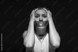 Portrait of a young suffering sad woman with tears in her eyes. Domestic violence, crying, religion, disagreement, fight, divorce, beating a weaker person, dark.