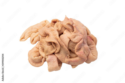 Raw Pork Large Intestine isolated on white background with clipping path.