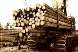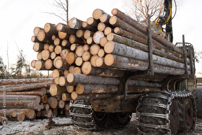 Wood harvesting in winter on the plot, equipment loaded with wood