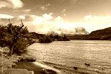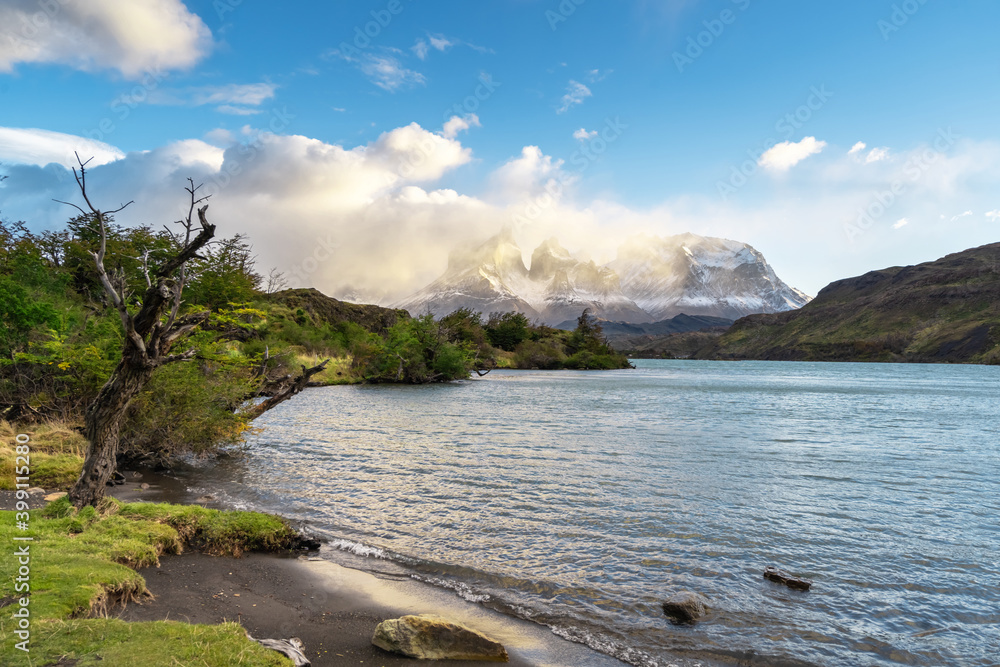 Landscape with lake Lago del Pehoe in the Torres del Paine national park, Patagonia, Chile