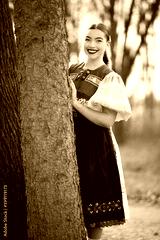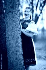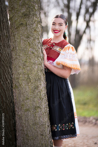 Young beautiful slovak woman in traditional dress. Slovak folklore