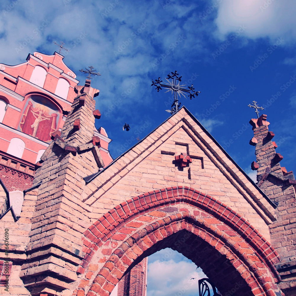 Outdoor fashion portrait of young beautiful woman wearing black and white dress, posing in green ivy leaves