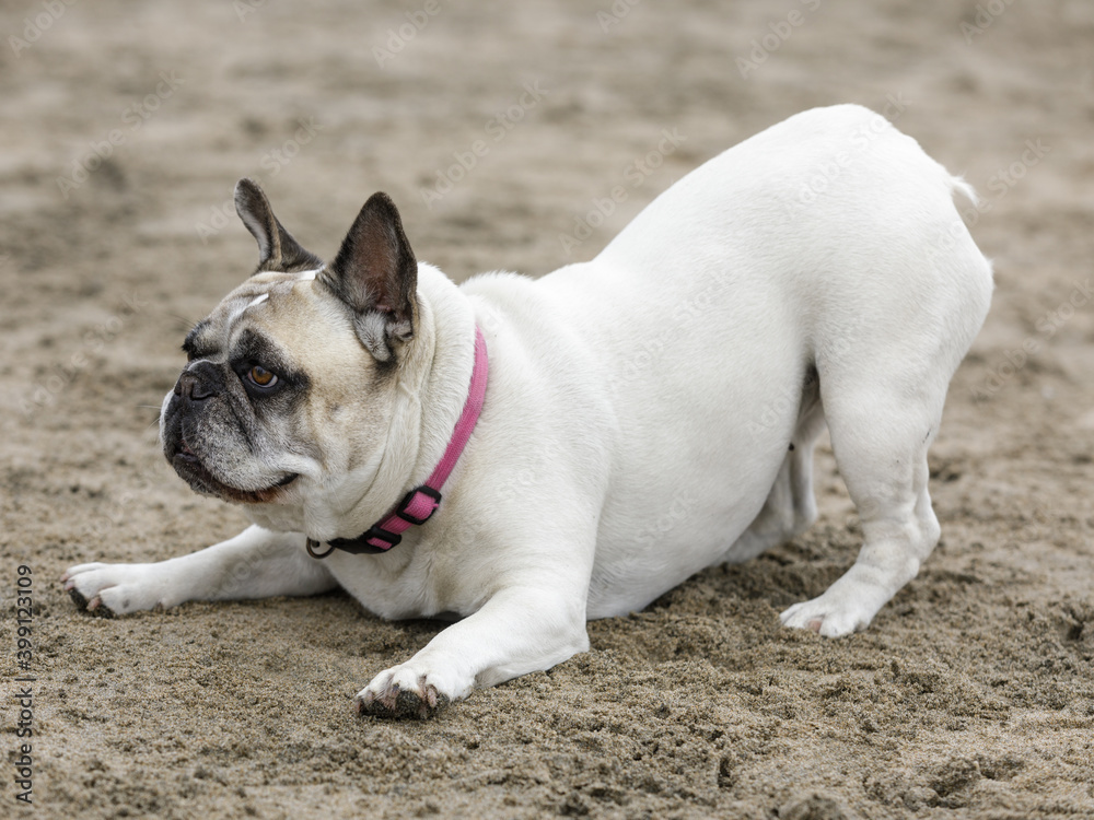 9-Years-Old white male Frenchie in playful posture