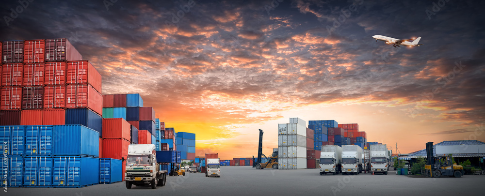 Industrial Container Cargo freight ship, forklift handling container box loading for logistic import export and transport industry concept backgroundtransport industry background