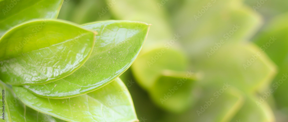 Close up of nature view green on blurred greenery background with bokeh and copy space using as background nature plants landscape, ecology wallpaper concept.