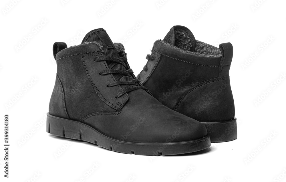 Winter shoes isolated on white background. Winter black boots.