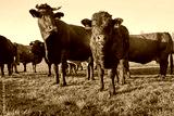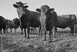 Curious calf with mother on pasture in the mountains.