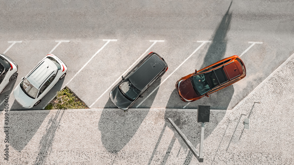 Bad parking. Occupying two spaces. Improperly parked car. Double parking