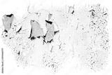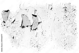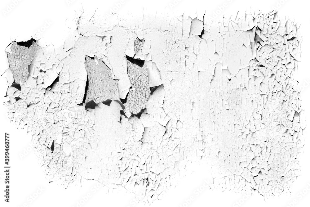 Grunge weathered shabby peeled painted concrete surface wall with big holes and cracks macro on grey colors for making brush isolated on white background