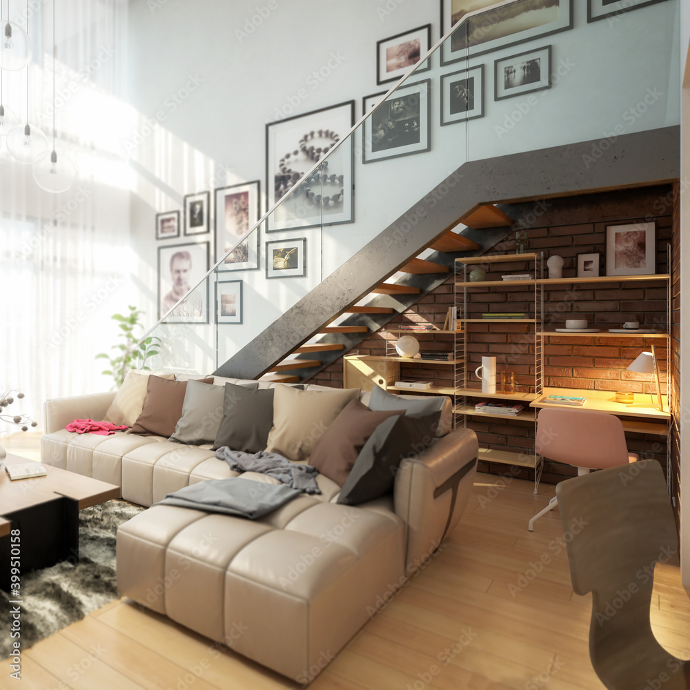 Contemporary Penthouse Mansarde with Stairs (detail) - 3d visualization