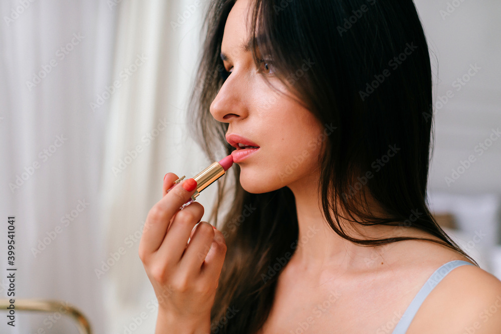 Portrait of beautiful elegant girl coloring lips