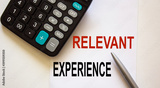 Blank notepad with the text RELEVANT EXPERIENCE on a white background next to the calculator