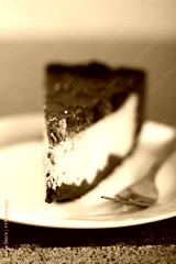 Cheesecake with chocolate crumb base topped with raspberry jelly
