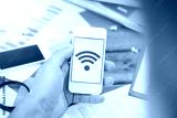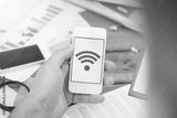 Home office background. Home Wifi network. Wireless internet connection. Tablet mobile spot. Internet symbol background. Wi-fi icon. Modern computer technology. Mobile device network signal.