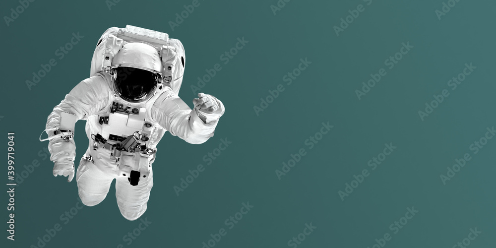 astronaut flies over color trend backgrounds. Elements of this image furnished by NASA
