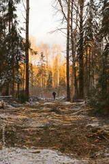 Road made of laid logs in the forest for driving to the plots for cutting wood
